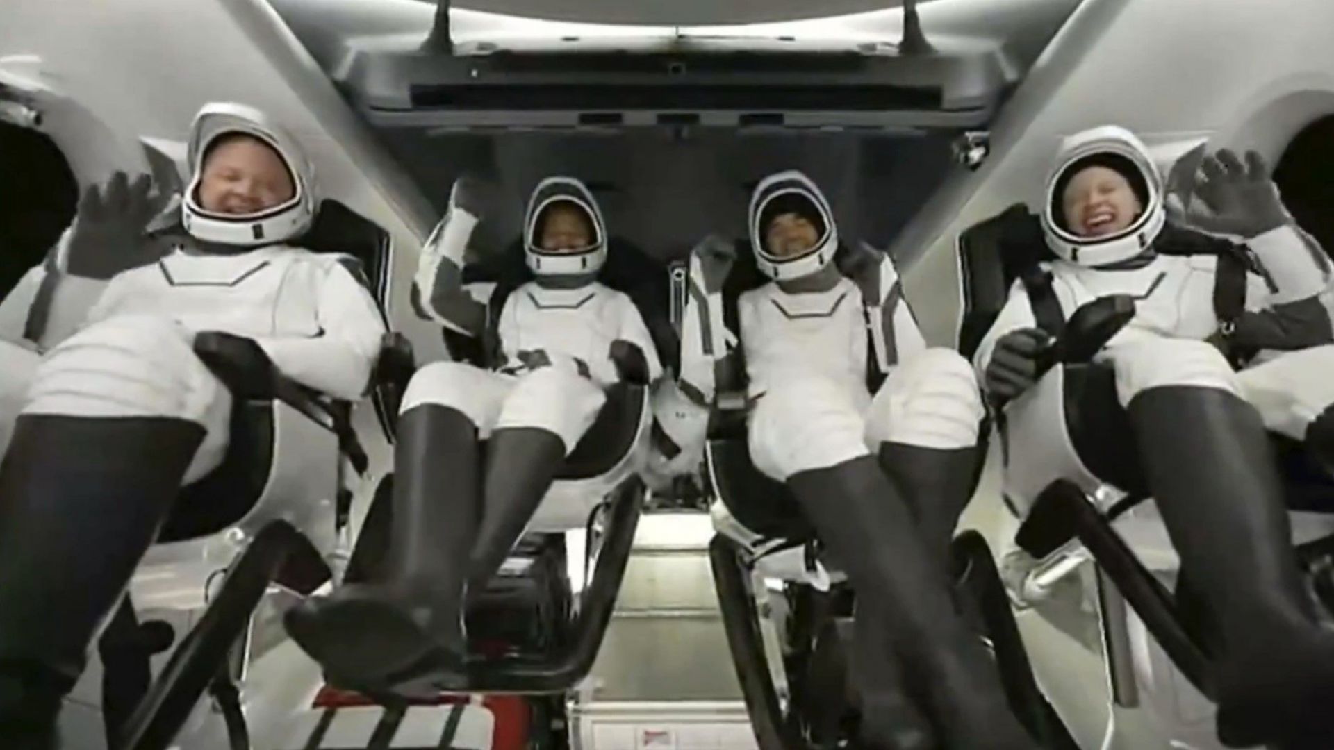 Минути след като капсулата се спусна в океана, две лодки на "СпейсЕкс" изтеглиха капсулата. Когато люкът й се отвори, първа от излезе Хейли Арсено - с широка усмивка и вдигнати палци на ръцете.